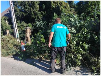 A hirtelen lezúduló eső után az utcákon felgyülemlett hordalékot összegyűjtöttük, és az átereszeket megtisztítottuk, hogy a csapadékvíz akadálytalanul el tudjon folyni.