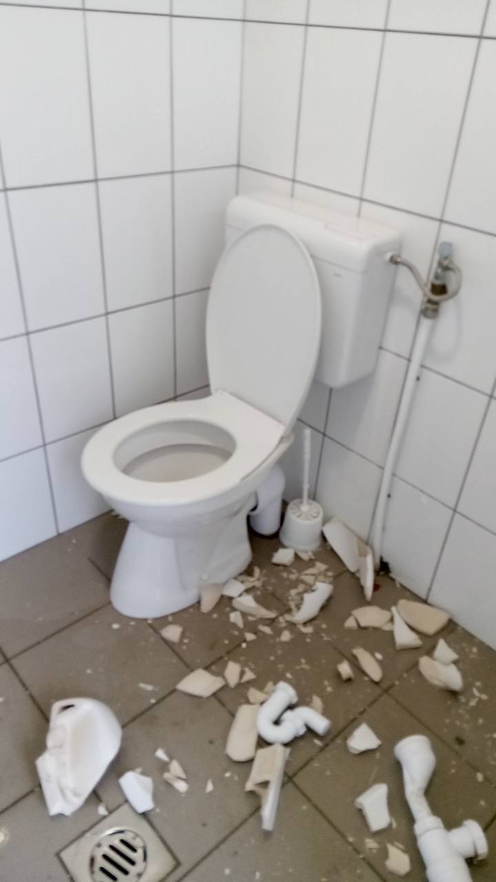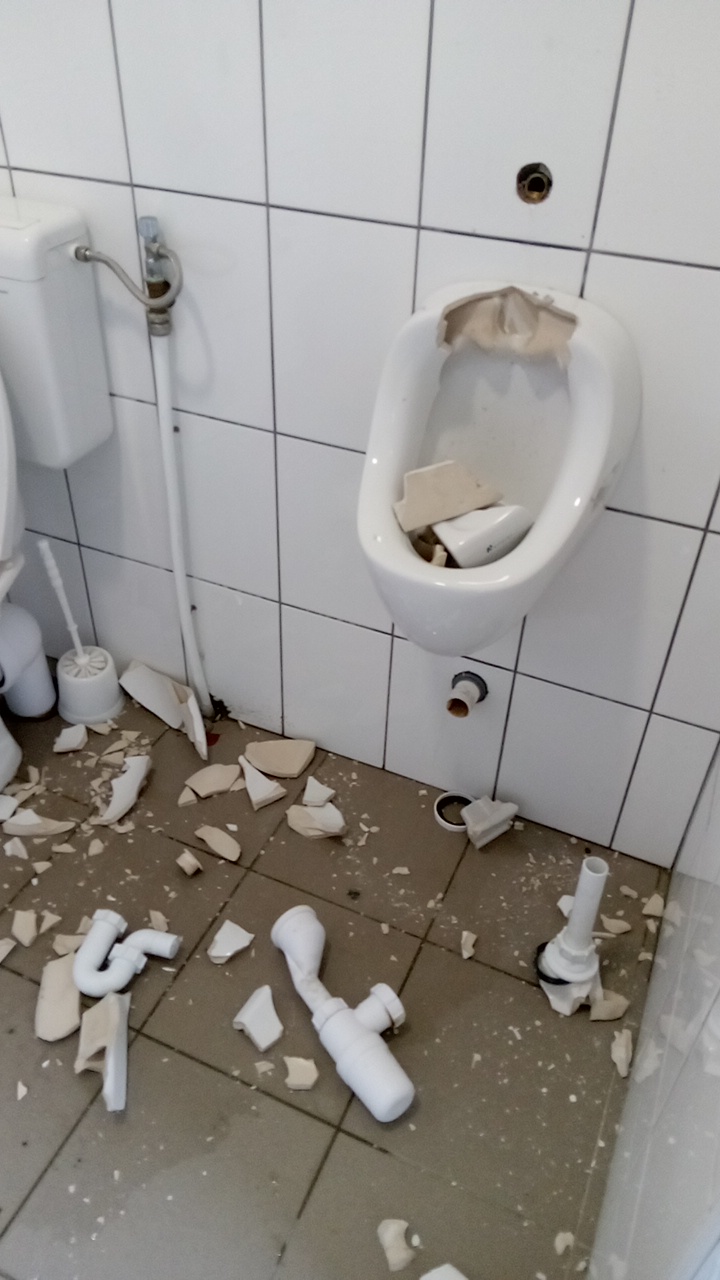 A rongálót sikerült azonosítani, a rendőrség intézkedett, a helyreállítás folyamatban van, az illemhely azonban átmenetileg nem használható.