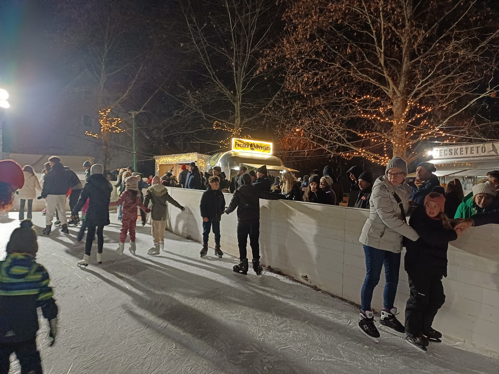 A friss, csillogó jég, a meghitt fények és a rengeteg mosolygó arc már az első napon megtöltötte élettel a pályát. Gyerekek, családok, barátok – mindenki megtalálta a maga örömét a csúszásban.